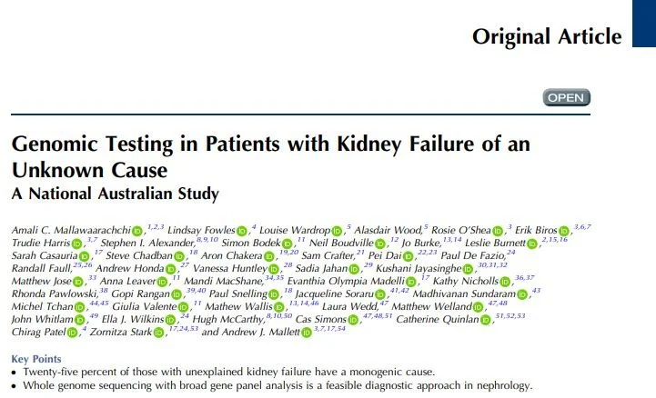 Australian Genomics Kidney Flagship study launching into national enrolment of participants.The Flagship, named ‘HIDDEN’, is using whole genome investigation to identify undetected nephropathies.